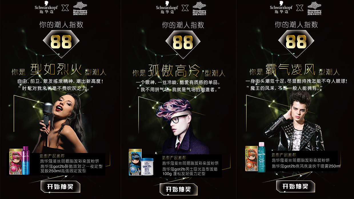 微信版H5参与互动人数为5250,生成潮人装备兑换码19份,在官网兑换潮人装备14份,有效兑换潮人装备14份。京东优惠券点击量190。QQ音乐版H5参与互动人数为63059人,生成400个兑换码,有400个人去官微兑换,其中有效兑换人数为379人。京东优惠券点击量1865。预热期间与活动期间结合KOL微博、潮人微博,针对音乐及潮流的微信KOL扩散总曝光量:41,632,686次;活动总曝光量41,632,686次;微信、微博KOL曝光量:2,961,200次;分享数:12,842次(转发点赞评论);粉丝增长数:5,245人。